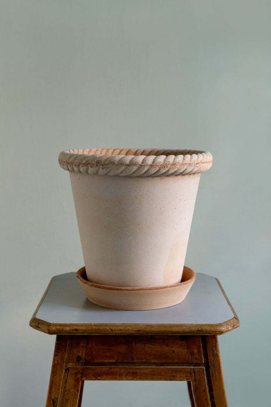 Denna Emilia kruka har en vacker repkant som är inspirerad av det romerska riket. Sedan 1800-talet har denna typ av dekorativa krukor producerats i Modena regionen Emilia-Romanga i Toscana. Krukan är designad av Bergs Potter och tillverkas förhand i Toscana, vilket gör varje kruka unik och till ett riktigt konstverk tack vare det tidskrävande arbetet. Fat till krukan ingår. Fatet har blivit behandlat med silikon för att inte släppa igenom fukt till ditt bord eller din fönsterbräda.