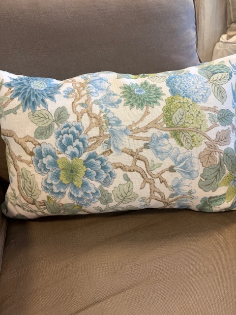 är ett handgjort kuddfodral från Butik Victorias egen syateljé. Kuddfodralet har ett vackert tyg i 82% viscose och 18% linne från GP & J Baker i mönstret Little Magnolia Willow. Mönstret är tryckt på kuddens fram- och baksida. Mönstrets placering på kuddfodralet varierar från bilden då varje kuddfodral klipps och sys för hand och på så vis blir unik.