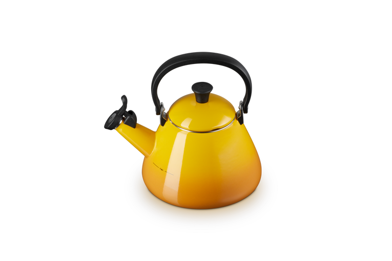 Le Creuset Vattenkittel Kone 1.6L Nectar med vissla är en klassisk, emaljerad stålkittel som kan användas på alla värmekällor inklusive induktion. Vattenkokaren har en stor botten som ger bra kontakt med värmekällan vilket ger en effektiv uppvärmning av vattnet. Vid användning på induktionshäll är den sladdlösa vattenkokare faktiskt lika effektiv som en elektrisk vattenkokare. Tekokaren Kone har ett värmebeständigt handtag och en fast vissla som är lätt att öppna när vattnet ska hällas upp. Tekannan rymmer 1,6 l vatten och den maximala vattenkapaciteten är markerad på sidan av kitteln för att undvika överkokning.
