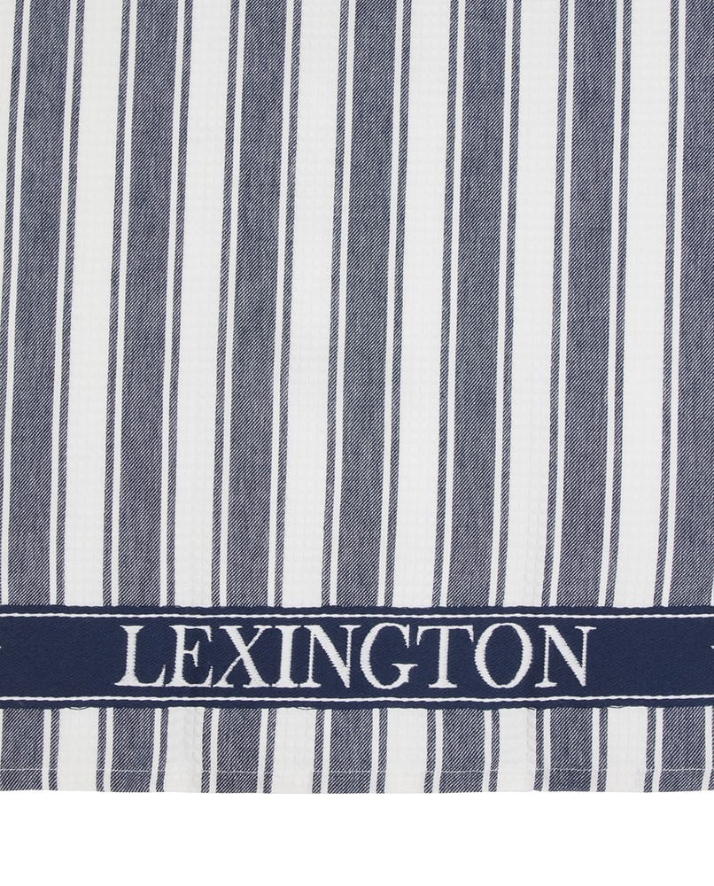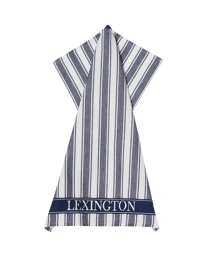 • Klassisk randig kökshandduk i bomullstwill med vita våfflade strukturränder och Lexington-logotypen